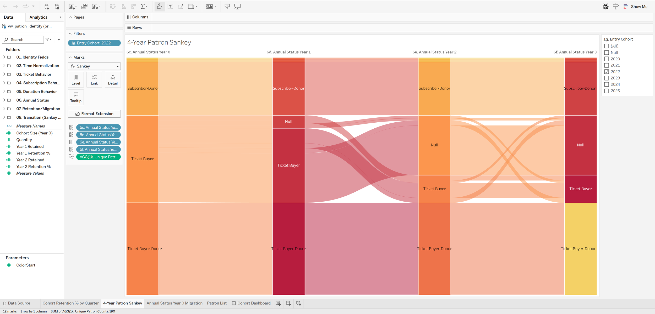 Cohort is an analytics environment built for performing arts organizations — structured around your data, surfaced through Tableau, and designed for teams who want to understand how their audiences actually behave over time.